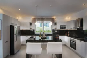 All of these villas are classical Spanish Mediterranean style architecture, with red tile roofs, stucco plastered archways, and distinguished stone columns with generous tropical gardens where hibiscus, bougainvilleas, and other magnificent tropical plants abound.